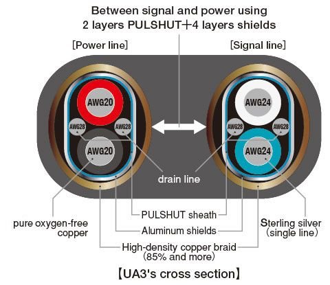 Uses pure silver(single core) conductor for the signal line and exhibits high-level transmission characteristics with the conductor size optimized.