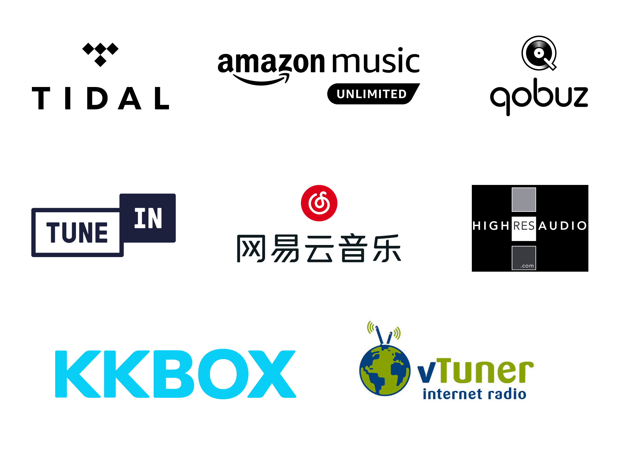 Streaming Inputs: Network shared folder, USB Storage, USB CD Drive, Internal Music Storage****, UPnP/DLNA Media Server, Amazon Music Unlimited, HighResAudio, KKBOX, Qobuz Sublime+, Netease Music, TIDAL/TIDAL Connect, AirPlay, Spotify Connect, TuneIn, Internet Radio, RoonReady
