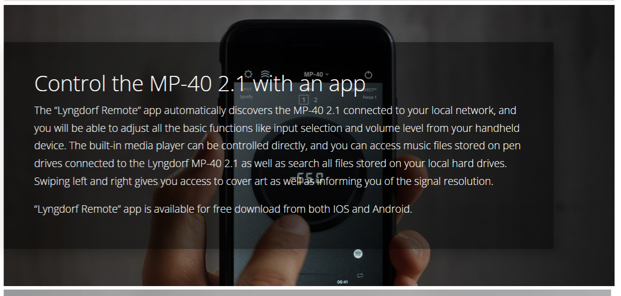 The MP-40 2.1 is equipped with Lyngdorf Audio’s proprietary RoomPerfect™ calibration technology, the world’s most sophisticated technology for adapting the sound system to the environment. The RoomPerfect™ calibration ensures a perfect surround sound experience in nearly any installation environment reducing or even eliminating bulky bass traps and other expensive acoustic treatment.