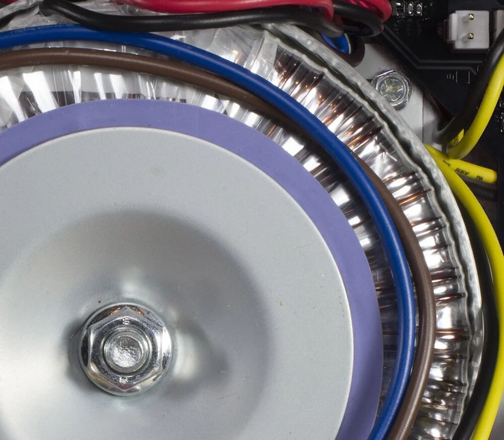 The power supply utilizes a 600 VA bifilar wound toroidal transformer, the most powerful in SOULNOTE's history. Commutating current loops have been minimized by placing ± independent commutating circuits from the fast recovery diode close to the transformer winding. The commutating capacitor employs an ELNA product developed specially for SOULNOTE and selected for its sound quality. Connecting multiple small capacity capacitors in parallel helps control and optimize frequency characteristics and mutual capacitance.