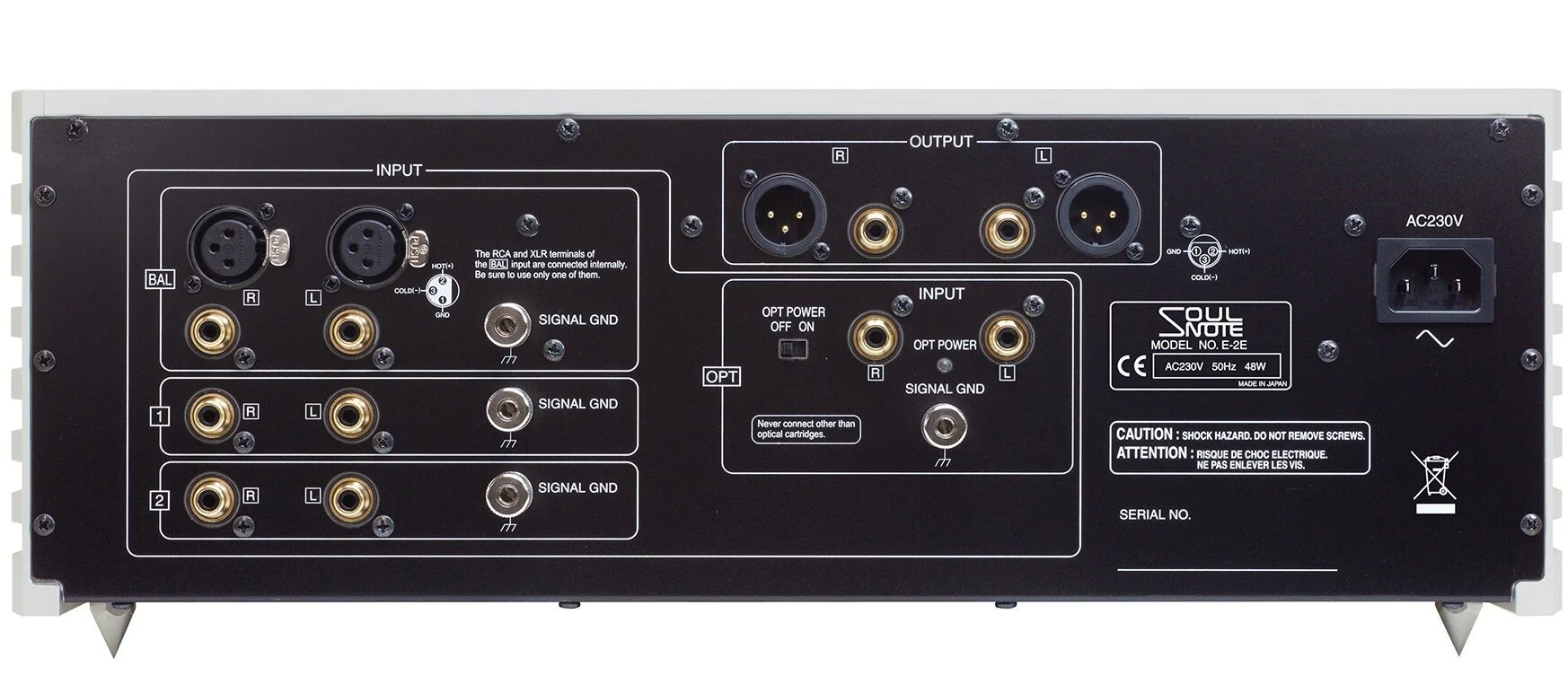 The equalizer components rely on differential emitter bypass channels incorporating new circuitry that significantly lowers circuit impedance. SOULNOTE's original perfectly balanced non-NFB circuits are free of electrical stress and do not require phase compensation nor do they poise band limitations. These circuits can fully accommodate photoelectric cartridges, which are uninhibited by the weight and inductive resistance limitations of coils and magnetic circuits. The combination of the photoelectric system's exceptional transient responsiveness with non-NFB produces a shockingly vibrant and vivid music soundscape.