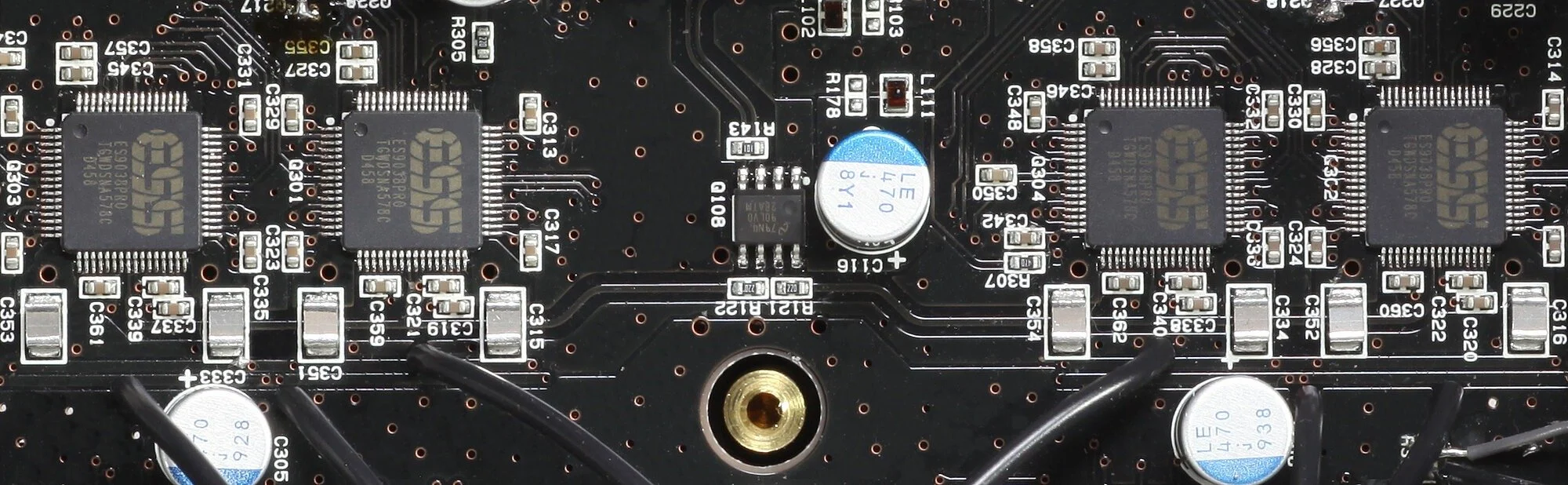 Each channel in the DAC chip uses two ES9038PRO chips, for a total of four in the player. Each channel’s incomparably powerful 120 mA current output is an essential element of the discrete non-NFB DAC. One current voltage conversion resistor converts this current output into a voltage directly before the first stage of the Type-R Circuit.