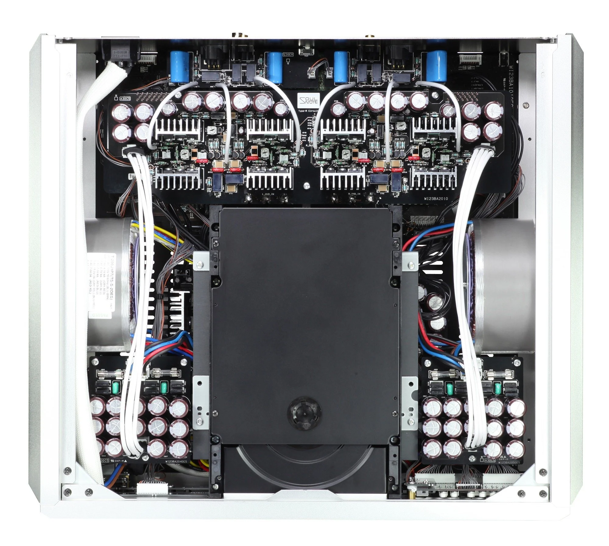 The power channels comprise the majority of the S-3 Reference body. The power supply for both the analog and digital systems are non-NFB power supplies using large, high-quality low magnification electrode foil capacitors housed under the SACD mechanism.