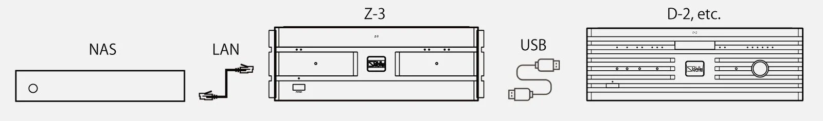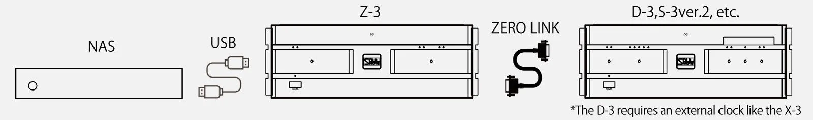 By using the USB input to connect to your computer or music server, you can use it as a ZERO LINK bridge with output from the ZERO LINK. High-quality ZERO LINK sound can be easily obtained by using the Z-3 in the same way as a general USB DAC.