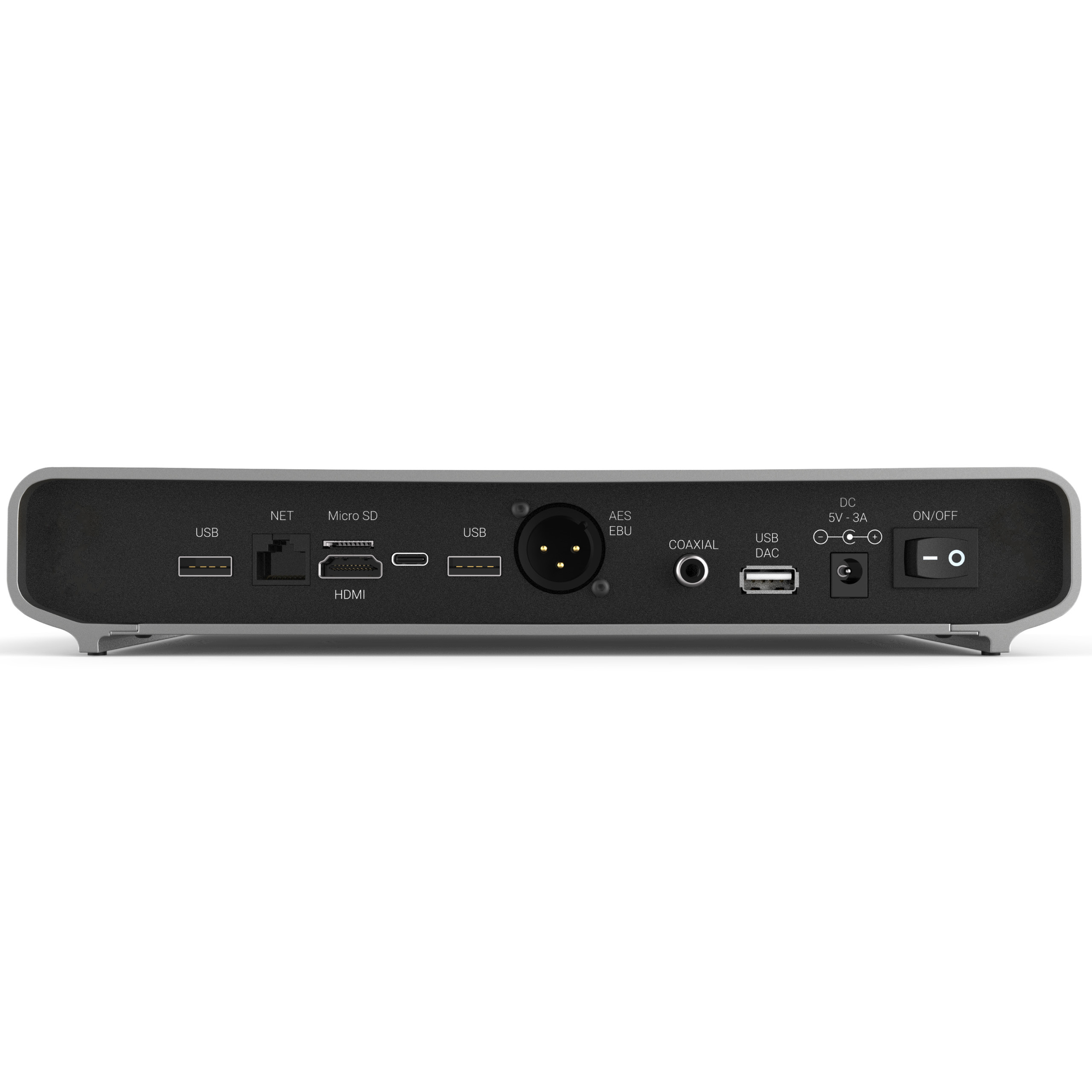 S/PDIF and AES-EBU outputs with Galvanic isolation and power filtering + USB Digital outputs with power filtering and a dedicated clock.